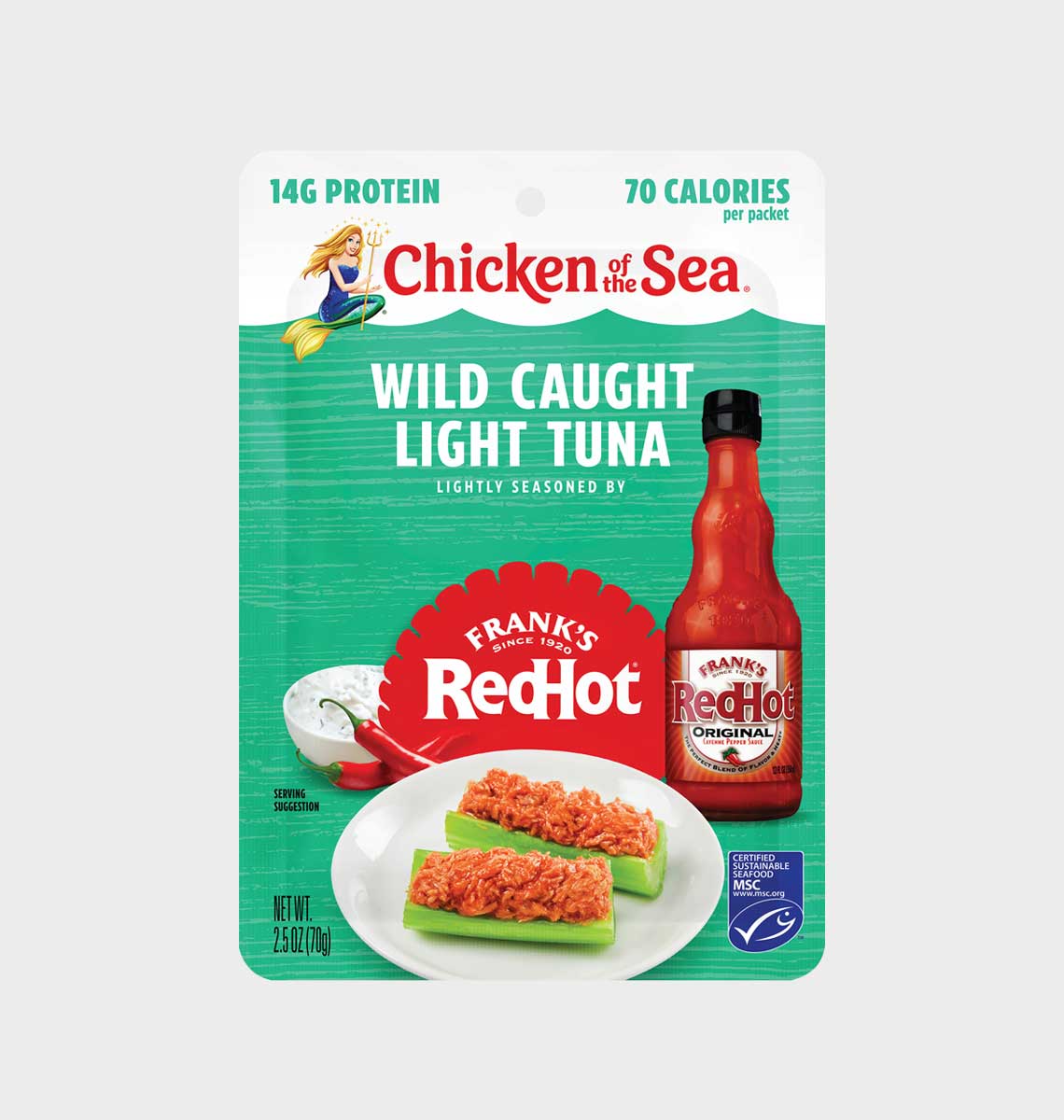 Frank’s RedHot® Original Cayenne Pepper Sauce meets our savory, wild caught tuna in this boldly infused packet. The premium blend of aged cayenne peppers brings a medium-hot harmony of flavor that’ll leave your taste buds singing.