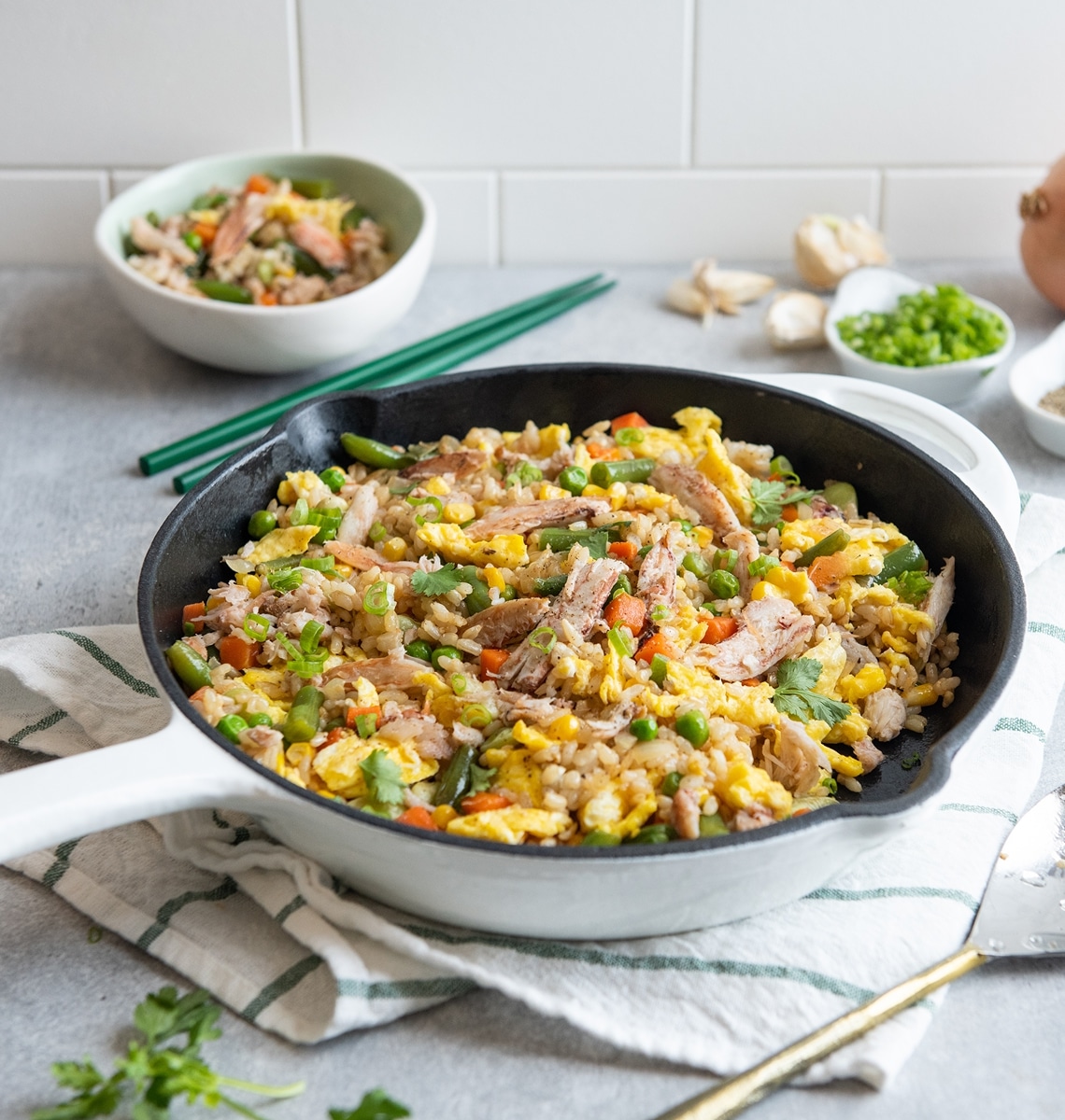 - Stir in the rice and frozen vegetables. Cook until everything is heated through.