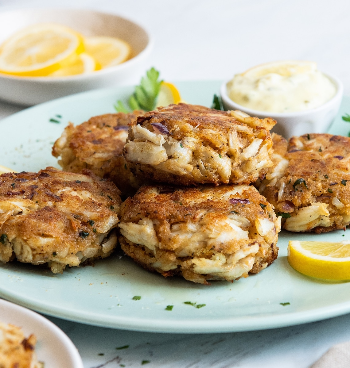 - In a bowl combine eggs, mayonnaise, bread crumbs, red onion, parsley, Worcestershire sauce, mustard, creole seasoning, paprika, and black pepper.