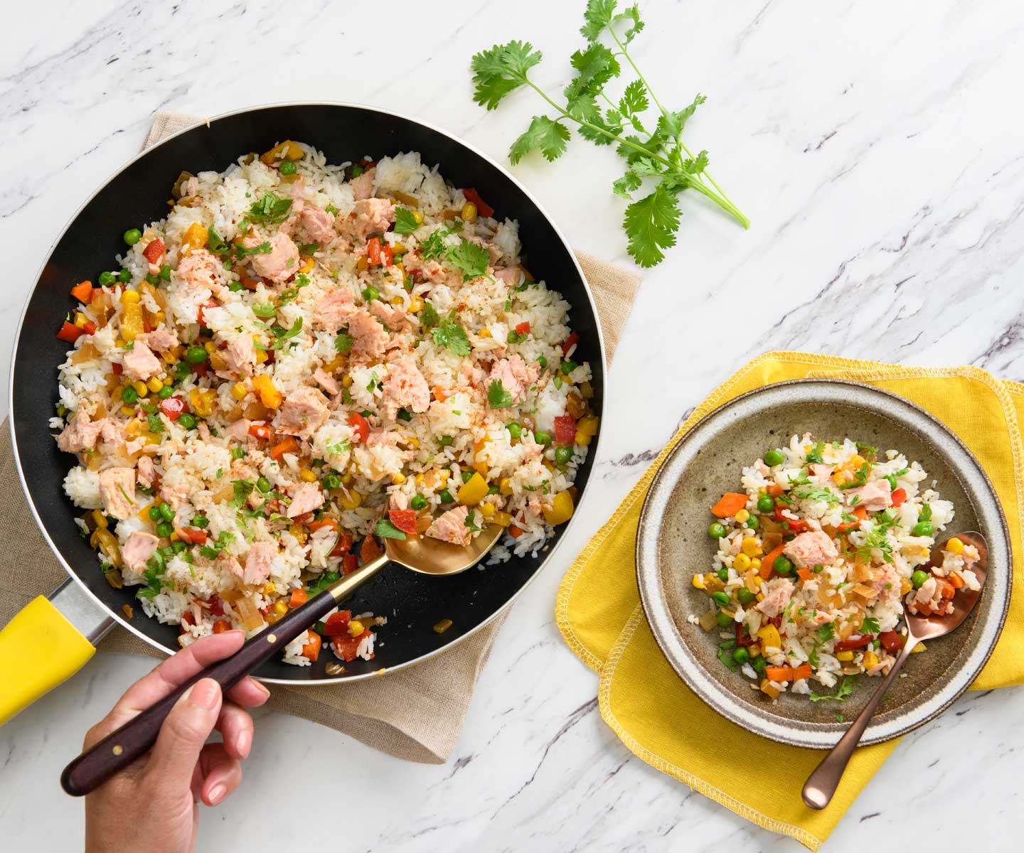 - Gently fold tuna into the rice mixture and cook until tuna is warm. Garnish with cilantro.